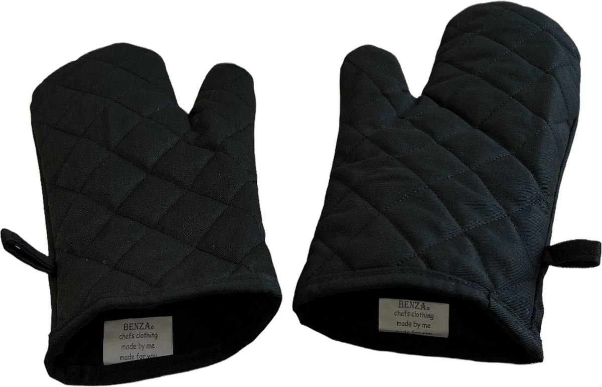 Met deze Benza ovenwanten hoef je je geen zorgen te maken aan het branden van je handen aan de oven of een hete pan. Deze ovenwanten zijn uitgevoerd in het zwart en is geschikt voor dagelijks gebruik, Met de ophanglus kun je ze makkelijk ophangen.