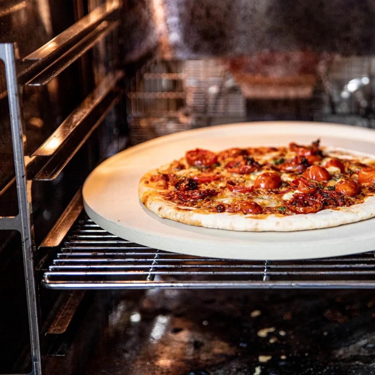 Niemand zit te wachten op pizza’s met een sompige bodem. Iets wat je met een normale ovenplaat vaak wel krijgt. Deze handige pizzasteen absorbeert vocht. Dit zorgt voor een extra knapperige bodem en pizza’s die smaken zoals bij een echte pizzeria.