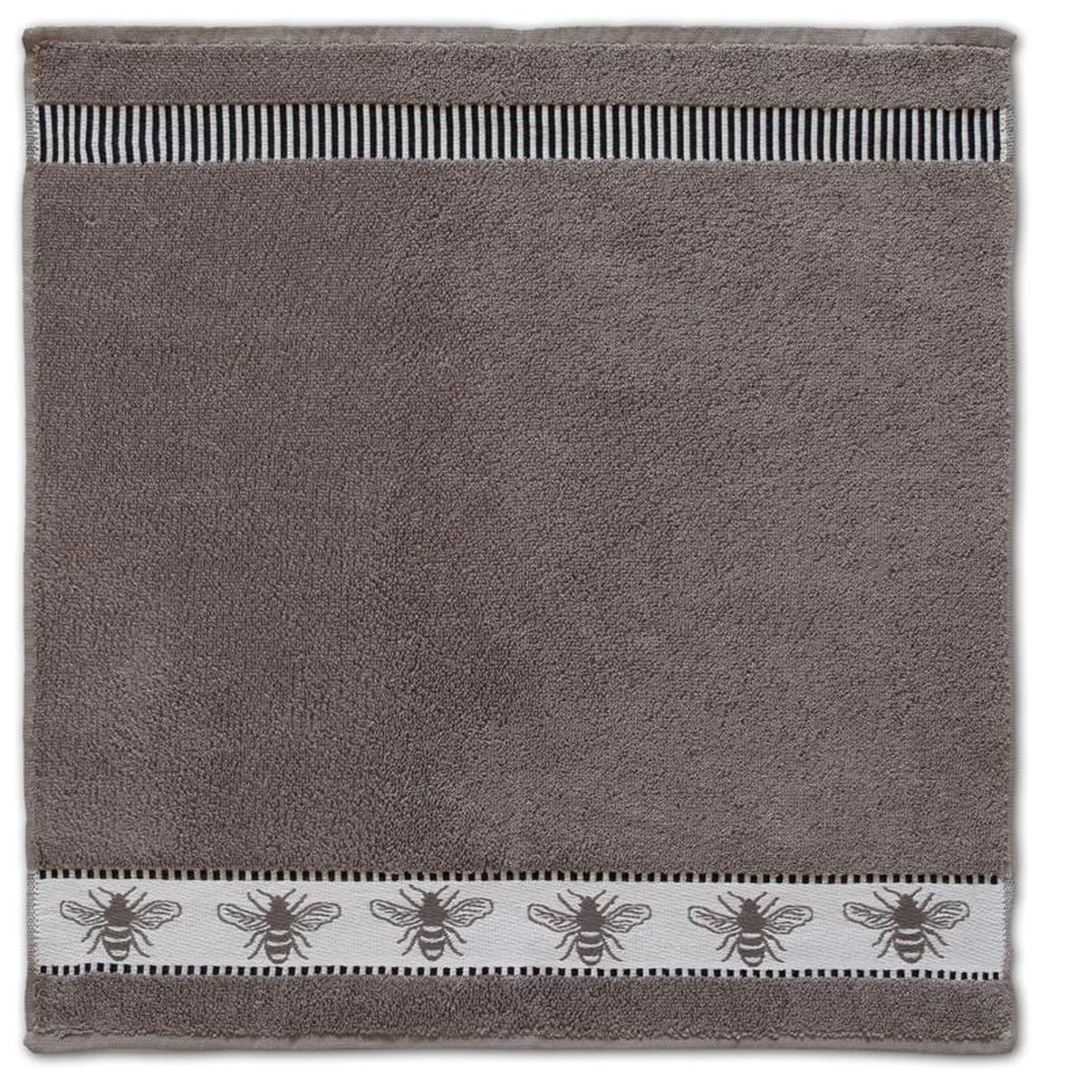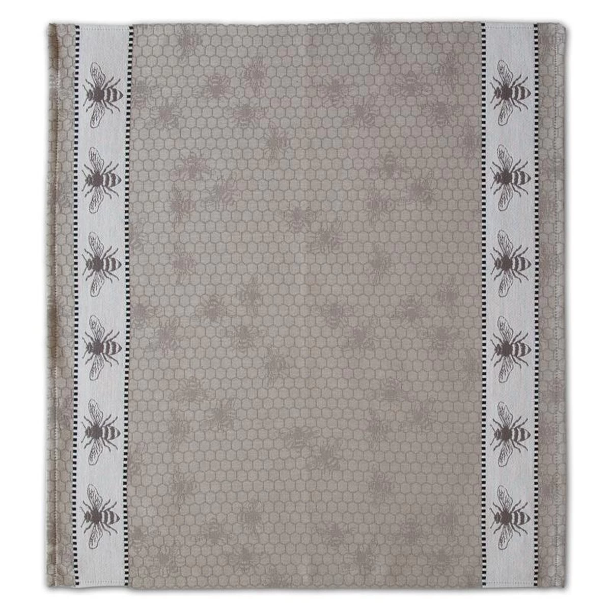 De thee- en keukendoeken Honey van DDDDD zijn op speelse wijze geweven met een honingraat structuur op een licht grijze achtergrond. In de randen sieren bezige bijtjes.