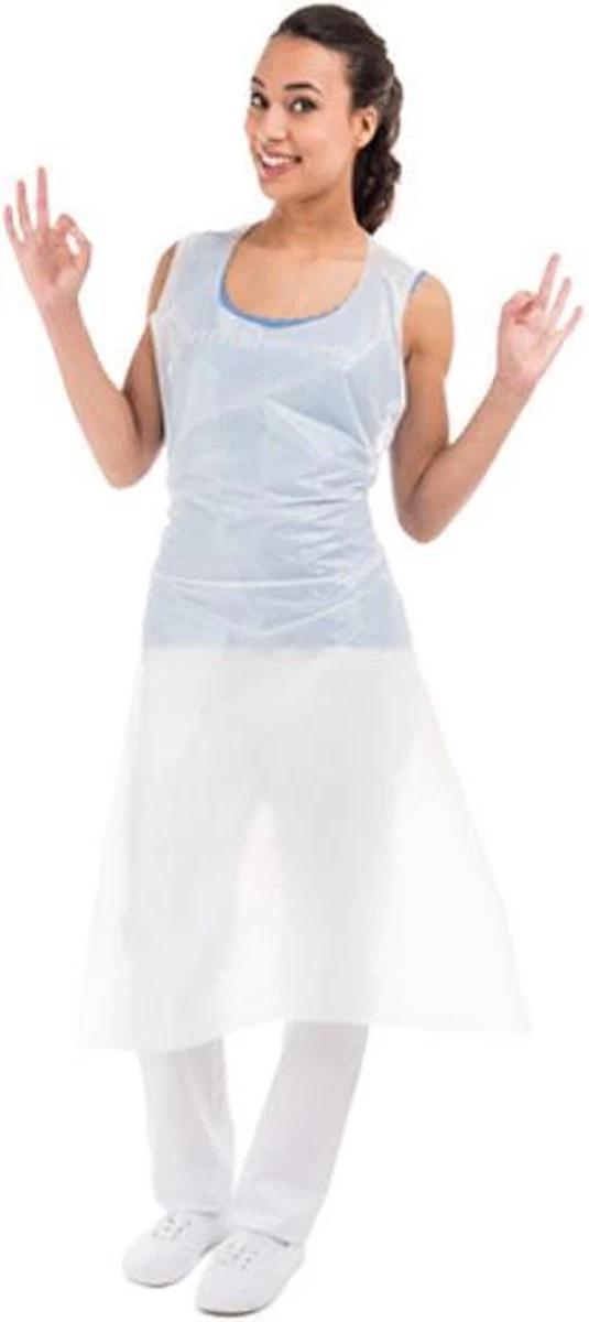 De latexvrije APRONIES zijn vervaardigd uit een lage dichtheid polytheen welke een optimale bescherming bieden bij normaal gebruik. Zo is het oppervlak van het schort effectief tegen vuil, olie en vocht. Kosten efficiënt in gebruik. Handige pullover.