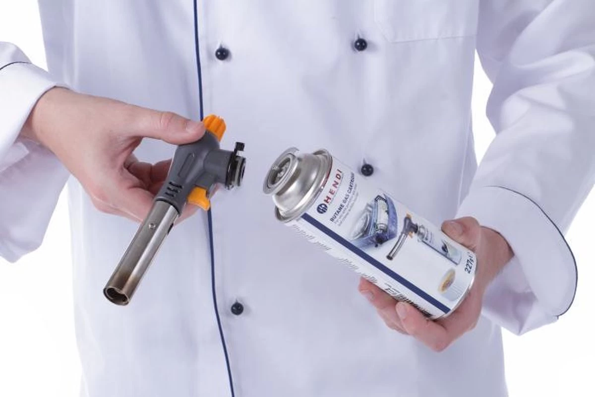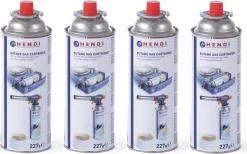 Hendi Butaan Gas Navulling – 4 StuksMet de Hendi Butaan Gas Navulling kan je eindeloos je Hendi Brander blijven gebruiken door eenvoudig de gasbussen te verwisselen. De navullingen worden per 4 stuks geleverd, zo heb je altijd een voorraadje achter de hand! Let wel, de Hendi Butaan Gas Navullingen kunnen alleen gebruikt worden op de Hendi Anti-Flakker en de Hendi Black Beast Brander.De navulling werkt gemakkelijk door hem op de Hendi Brander te plaatsen en te starten met de piëzo ontsteking. De vlam is hierdoor helder blauw. Is de bus leeg? Dan kan je eenvoudig een nieuwe gasbus op de Hendi Brander plaatsen. Is deze Hendi Butaan Gas Navulling niet helemaal wat je zoekt? Bekijk dan het gehele aanbod aan Creme Brulee Branders bij Cookinglife. Wil je meer zien van Hendi? Neem dan een kijkje bij het assortiment met Hendi Keukengerei of bekijk alles van Hendi.