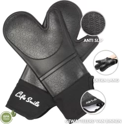 SWILIX ® Ovenwanten 2 Stuks – Ovenhandschoenen – Siliconen Ovenwant – Zwart