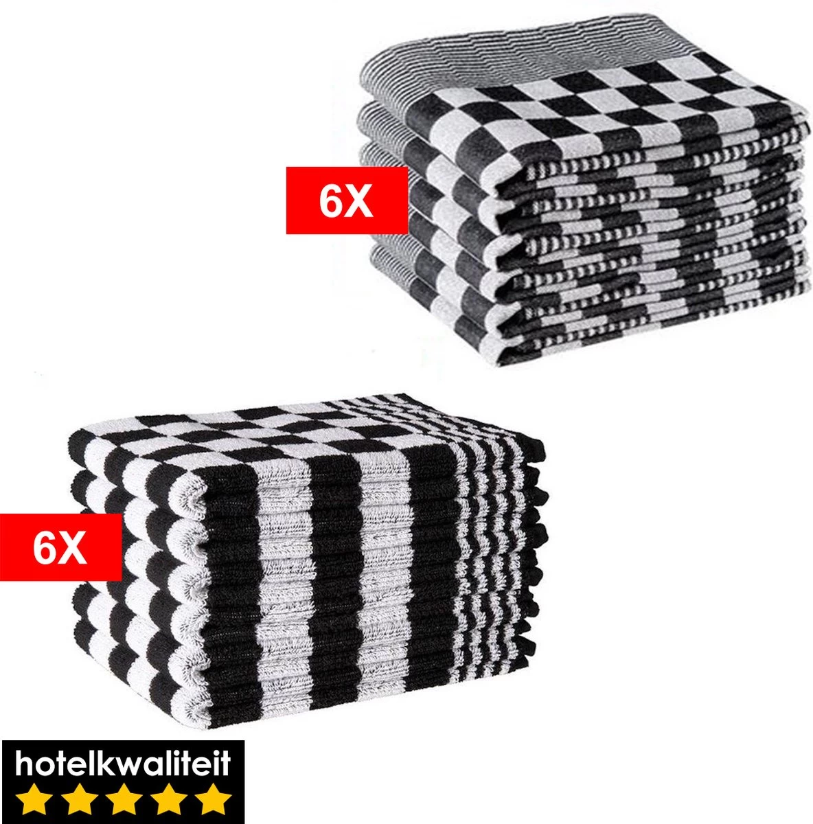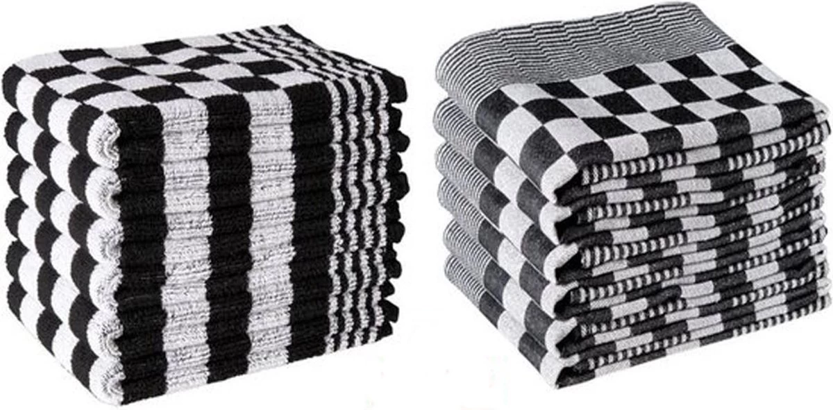 Slaaptextiel Theedoeken en Keukendoeken Set – 6 Theedoeken – 6 Keukenhanddoeken – Zwart
