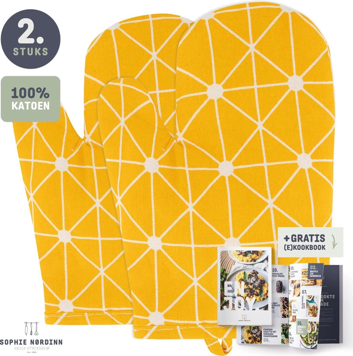Ovenwanten Van Sophie Nordinn® – Ovenhandschoenen Lund (Lijnen Geel) – Ovenwanten 2 Stuks – Katoen