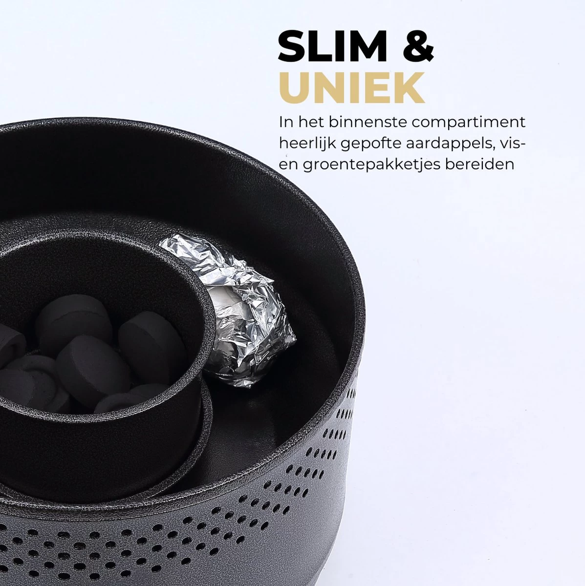 - Gemakkelijk mee te nemen: deze draagbare houtskoolbarbecue is met de handige gratis draagtas gemakkelijk te vervoeren. Je kunt nu altijd en overal barbecueΓ«n: op het balkon, op de patio, op de boot of op de camping. De gaatjes zorgen ervoor dat het binnenste gedeelte met koude lucht wordt geventileerd en dat de hete lucht door de gaatjes kan ontsnappen. De buitenkant wordt dus aan het onderste gedeelte nooit heet.