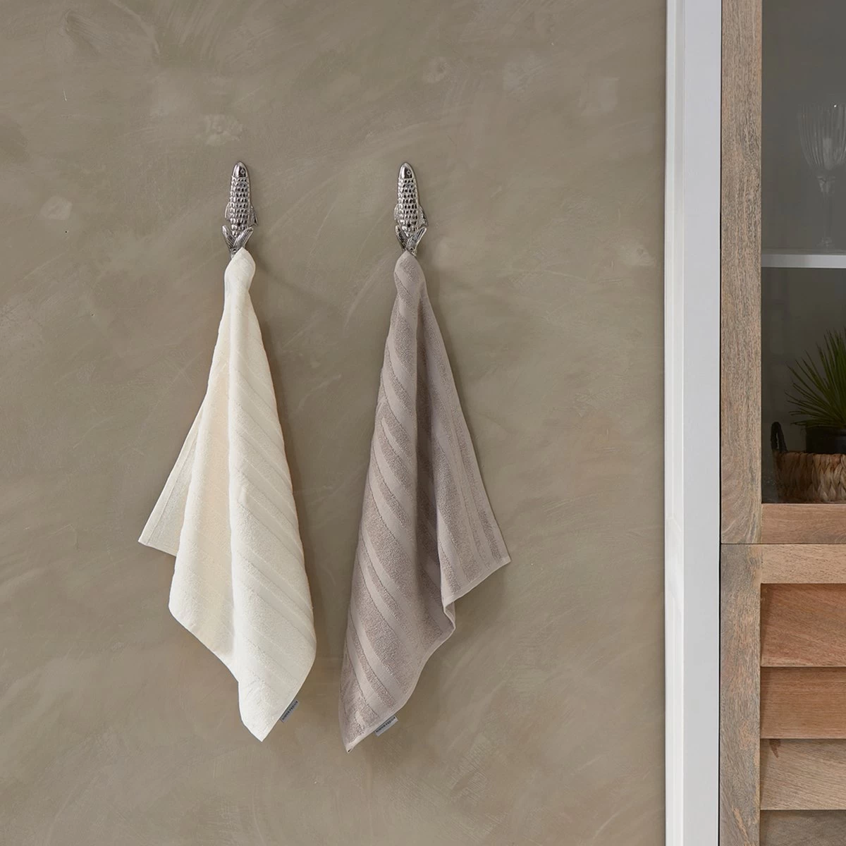 De RM Ubuntu Kitchen Towel 2 pieces is een set van twee stijlvolle keukenhanddoeken in neutrale kleuren. De witte en beige handdoeken hebben een geweven patroon van strepen, wat zorgt voor een reliëf dat prettig aanvoelt. De handdoeken zijn gemaakt van een hoge kwaliteit katoen. Bekijk ook onze RM Ubuntu Tea Towel-set!