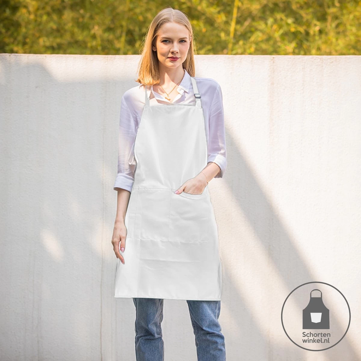 Keukenschort wit met een professionele uitstraling