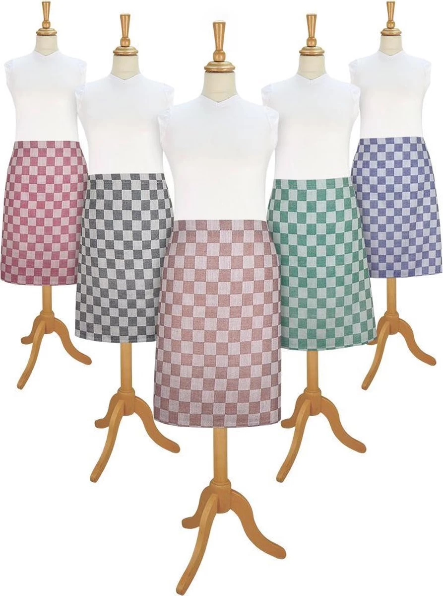Schort, lange levensduur: 100% katoen. Draagt fijn. Blijft mooi in de was. Makkelijk te strijken. Mooie uitstraling. Voor in de keuken en bediening. Geen zakken (dus ook geen vuil dat achterblijft in de zakken). One size fits all.