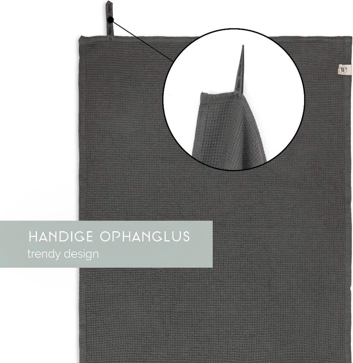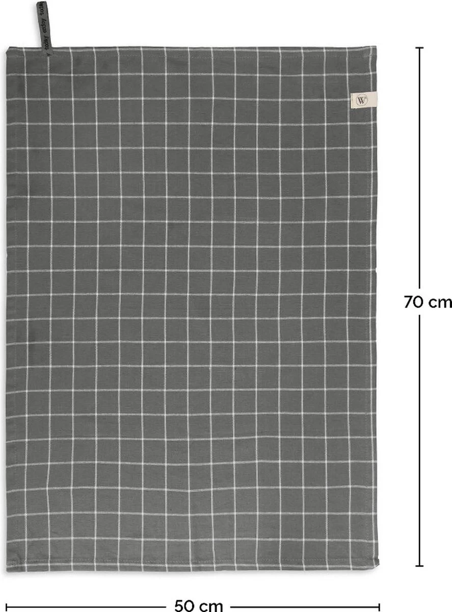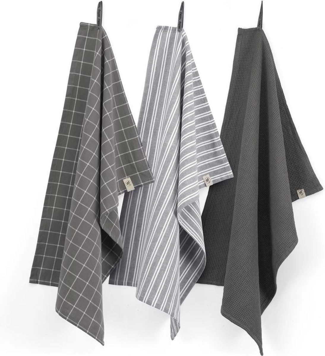 Walra Theedoeken Dry with Cubes, Stripes & Blocks – Keukenhanddoeken 3 x 50x70cm – Theedoeken en Keukendoeken set 100% Katoen – Off Black